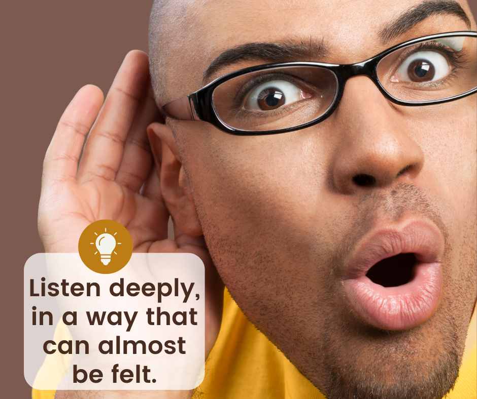 Have you ever been listened to deeply—so deeply it could almost be felt? If so, you know that listening is powerful. It’s a gift! When engaging in small talk, don’t only focus on the talking piece. The best communicators get curious. They ask good questions. Then they stop talking and listen intently.